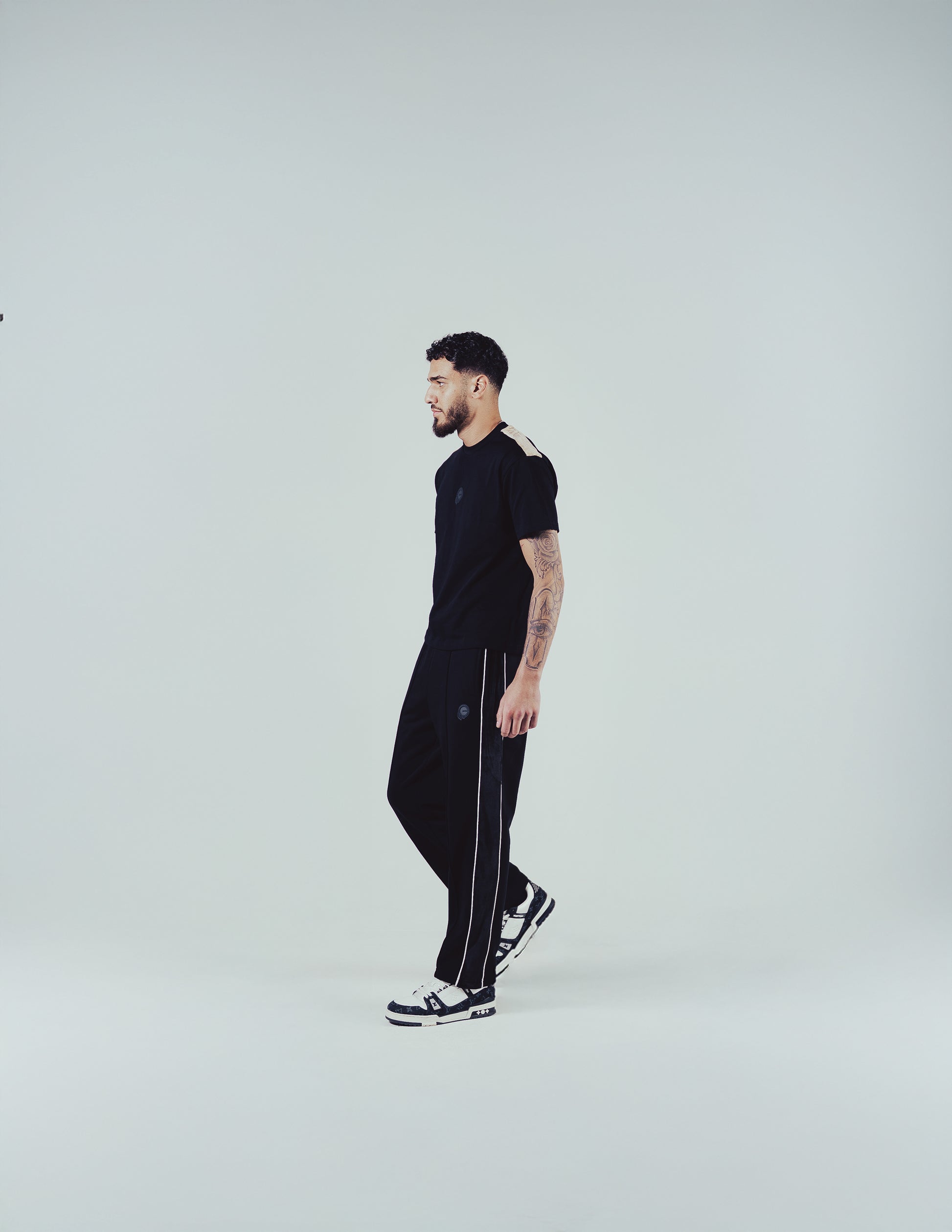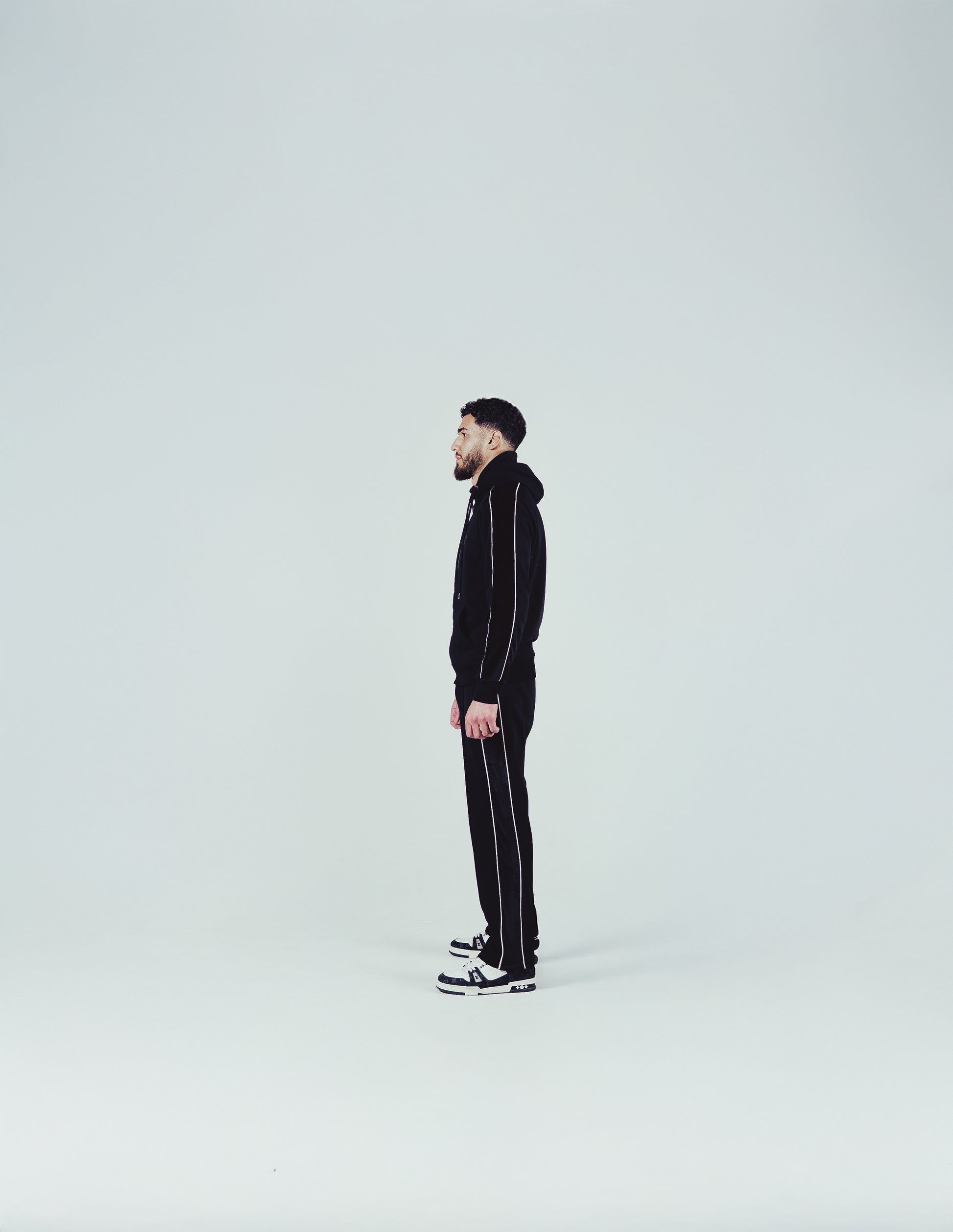 • Black velvet side stripes